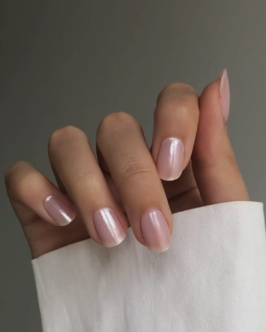 Nude cremoso con effetto cromato scintillante.